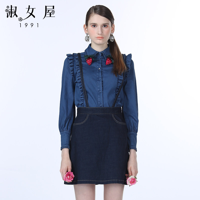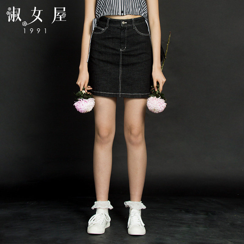 淑女屋旗舰店官网正品春邱季新款修身微弹通勤气质深蓝色女牛仔裙
