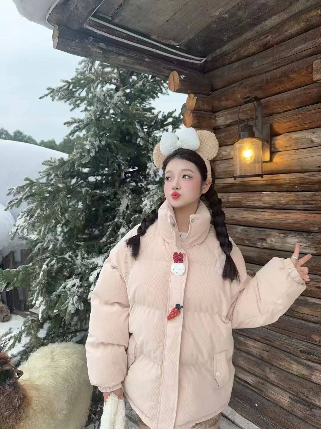 甜美可爱立领棉衣女2025冬季新款韩版休闲宽松卡通装饰百搭外套
