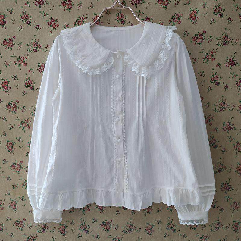 经典自然元素专柜正品 蕾丝衬衣长袖衬衣学院气质娃娃领女衫ASC03
