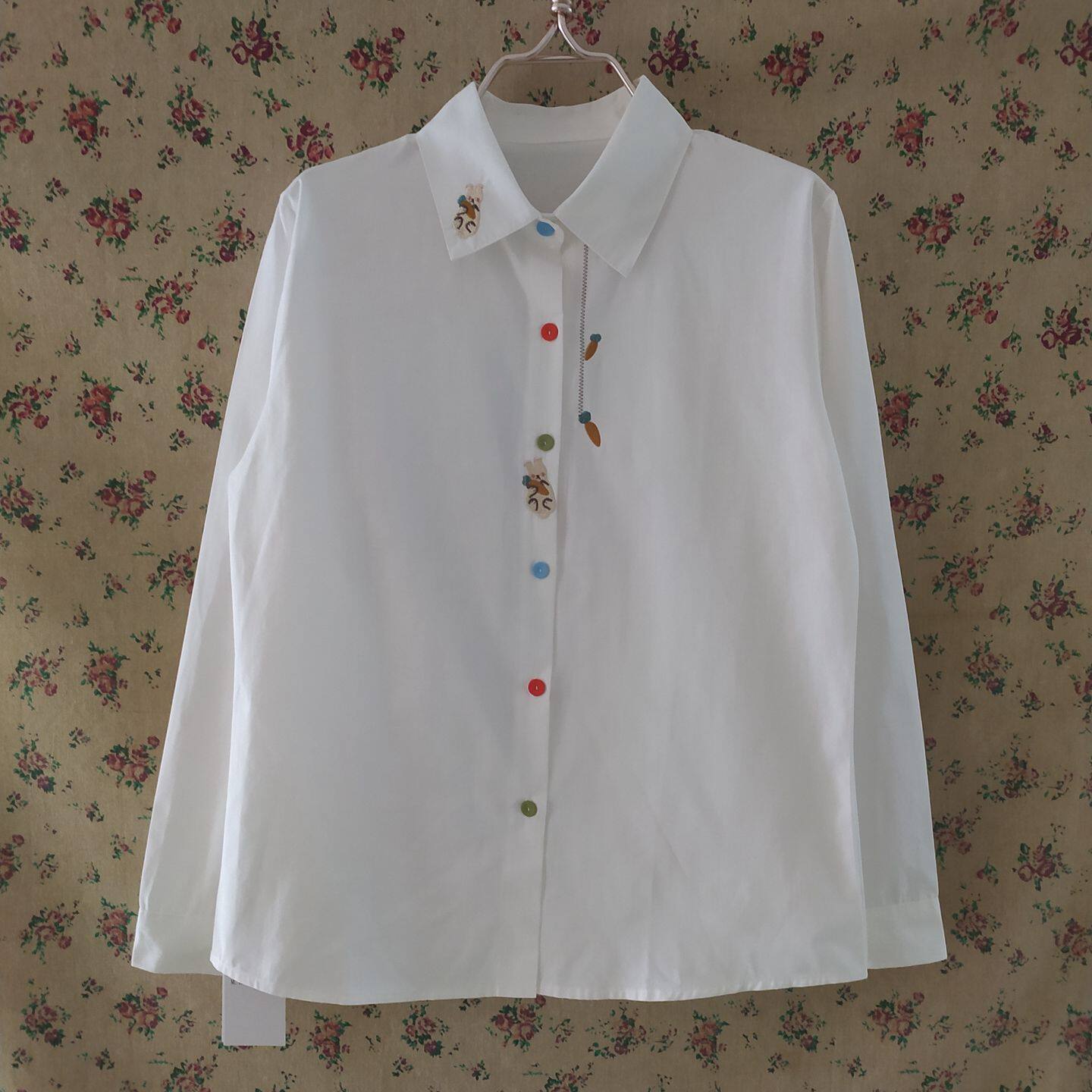 专柜正品 刺绣兔子米白色衬衫女长袖翻领彩扣小清新百搭衬衣MAC47