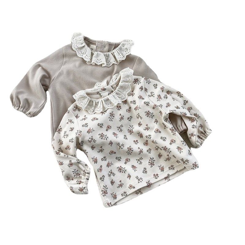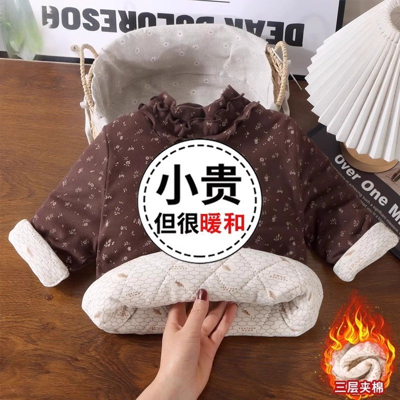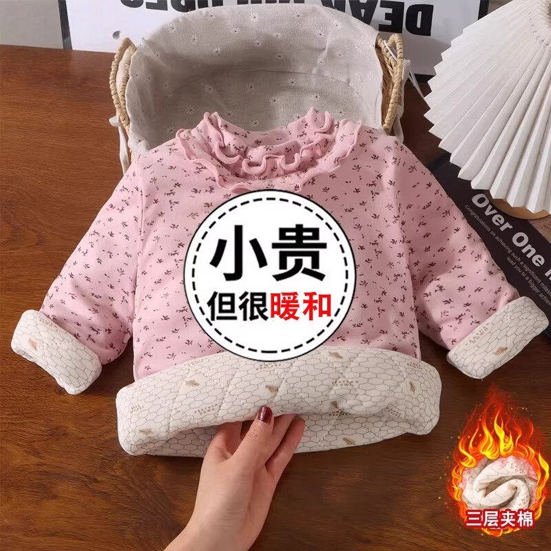 女童秋冬季新款洋气甜美碎花打底衫女宝宝加厚保暖花边领棉服童装