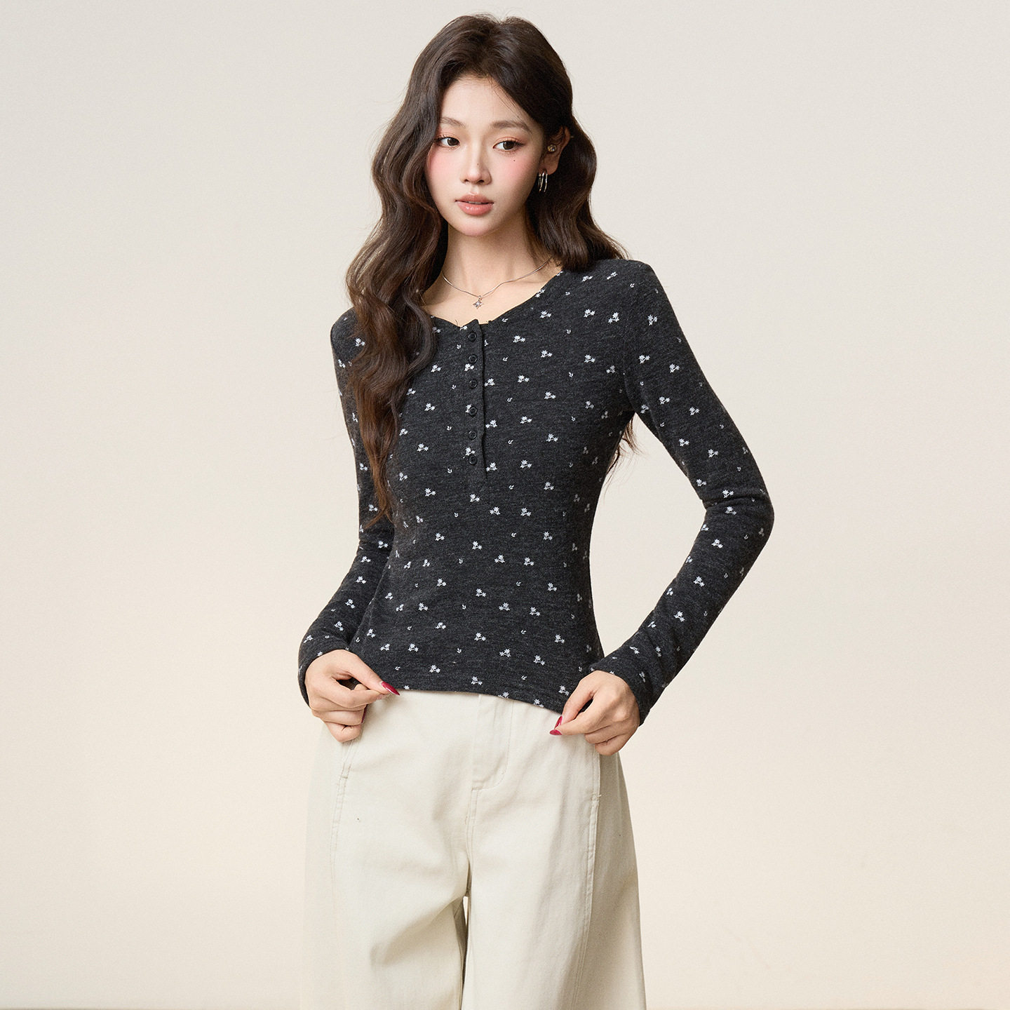 德绒圆领碎花打底衫女设计感秋冬新款宽松修身正肩巨好看内搭开衫