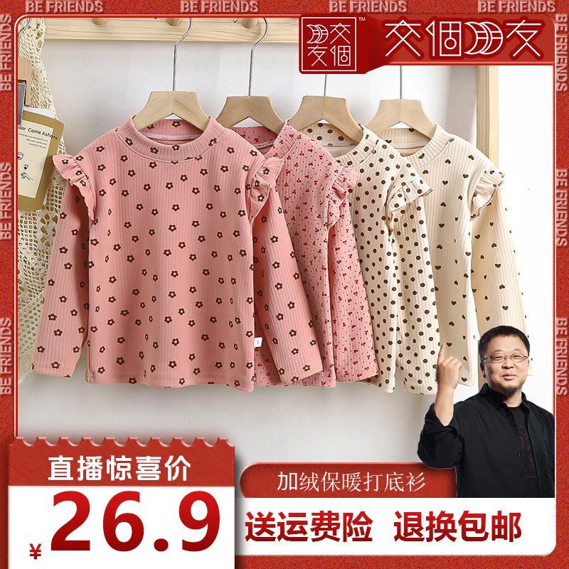 女童秋冬季碎花打底衫女童飞袖秋季T恤小女孩百搭网红飞袖打底衫