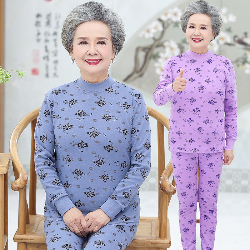 婆婆碎花打底衫女装薄款长袖老年人家居秋衣秋裤妈妈保暖内衣舒适