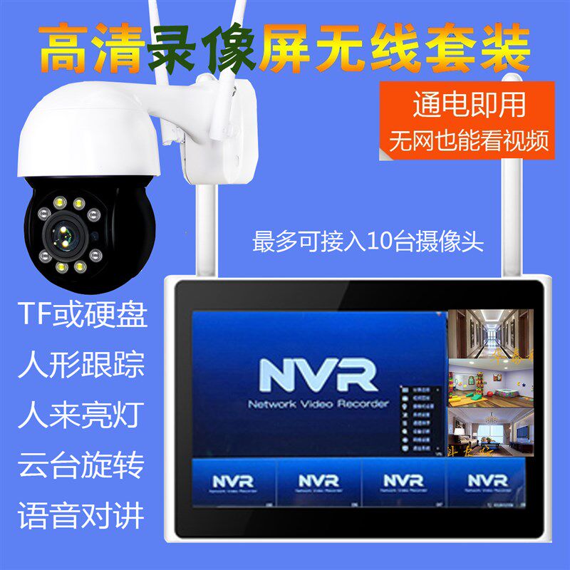 无线监控套装设备录像一体机带屏显示器高清摄像头云台旋转球家用