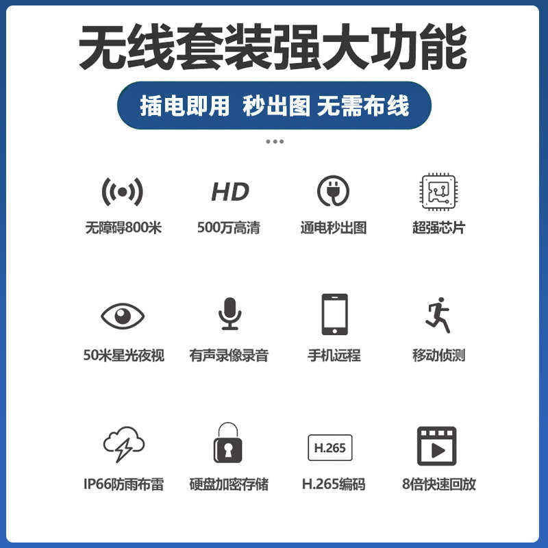 500万无线数字监控器设备套装高清一体机室外室内摄像头家用远程