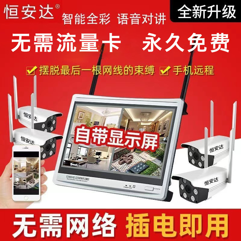 无线监控器全套设备套装一体机显示屏系统家用店铺商用摄像头高清
