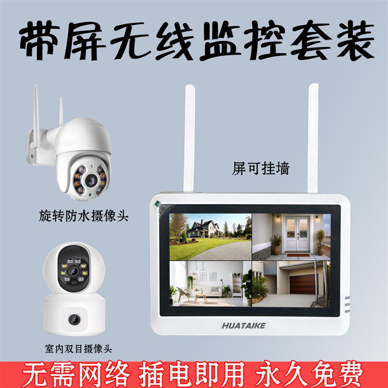 无线监控套装全套设备带屏一体机语音对讲旋转云台高清摄像头家用