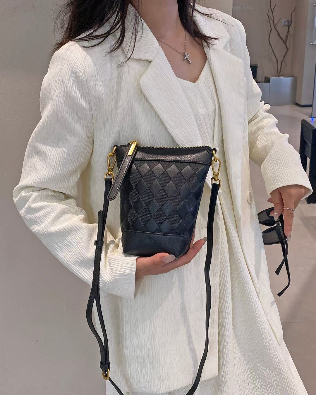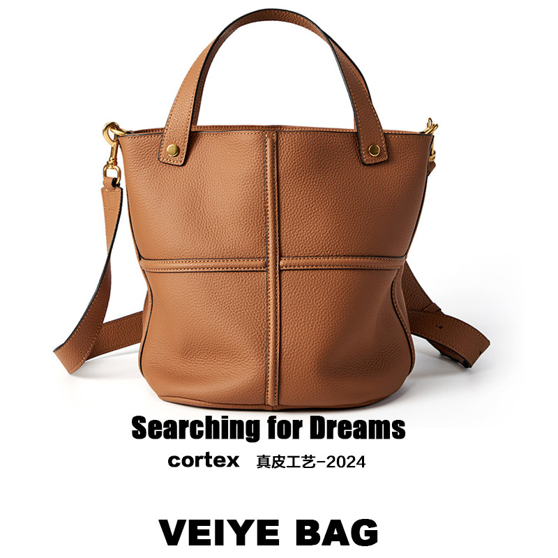 伊人皮具同款2025新款牛皮水桶包时尚撞色百搭女包真皮挎包手机包