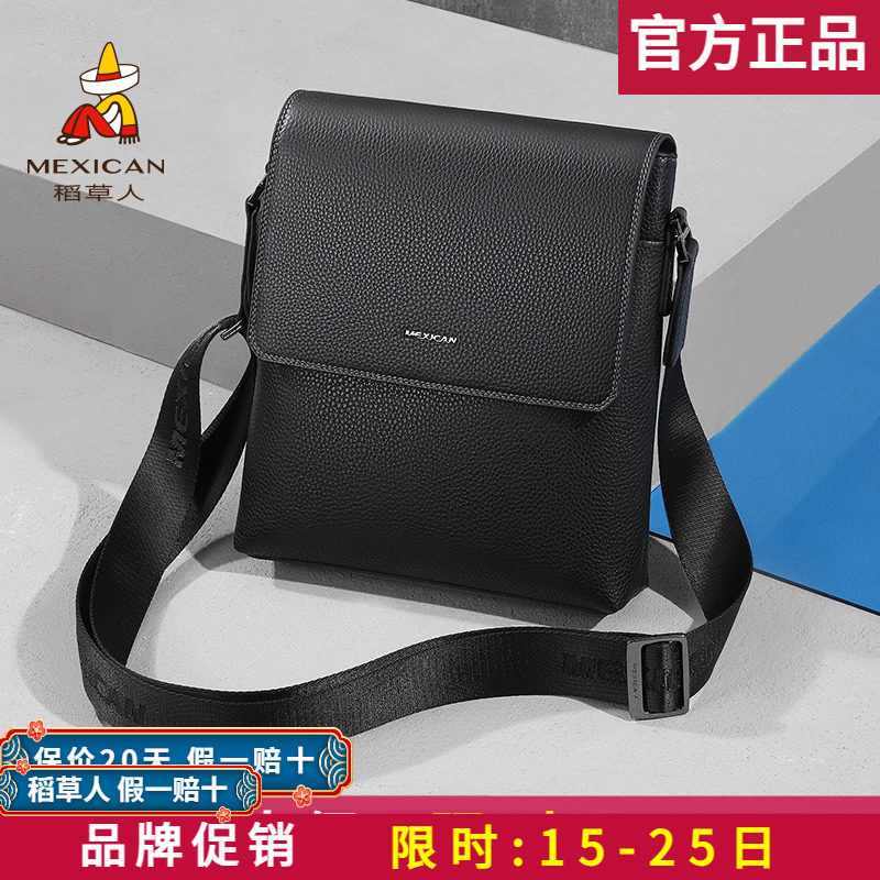 稻草人单肩包男士商务休闲牛皮斜挎包真皮挎包大容量男包官方正品
