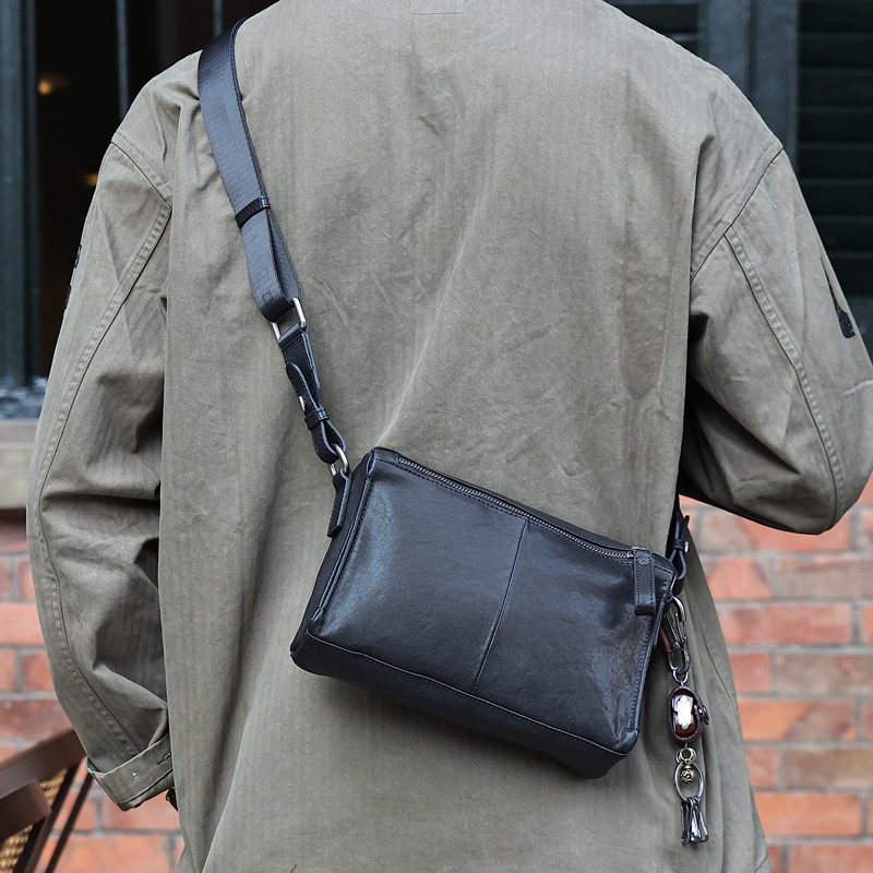 迷你单肩包男士真皮挎包斜肩包横款软皮小包斜跨小背包休闲潮男包