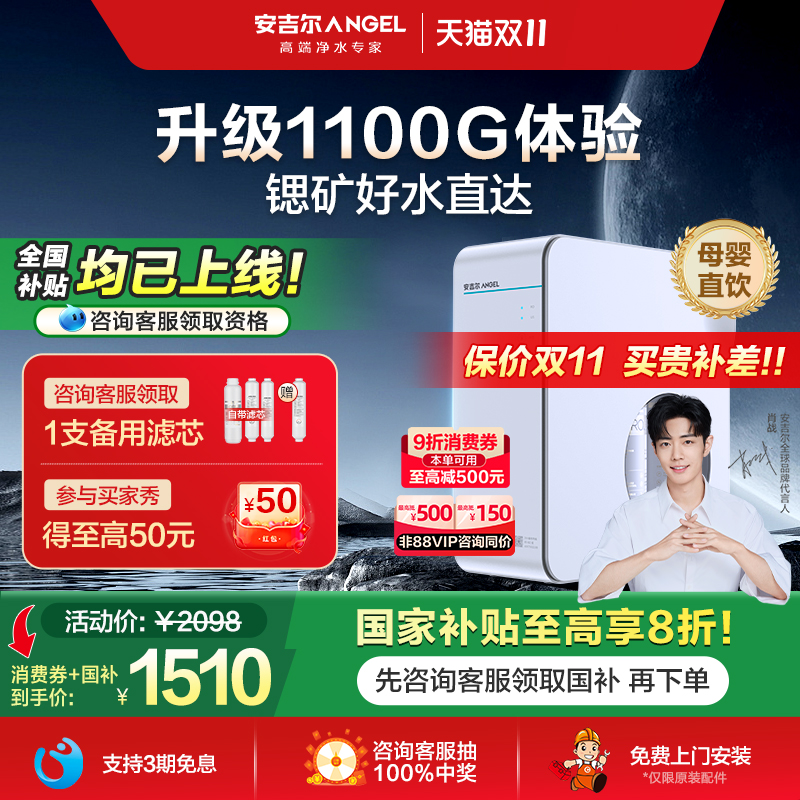 政府补贴安吉尔净水器家用直饮机厨房自来水过滤玉龙Max1200G