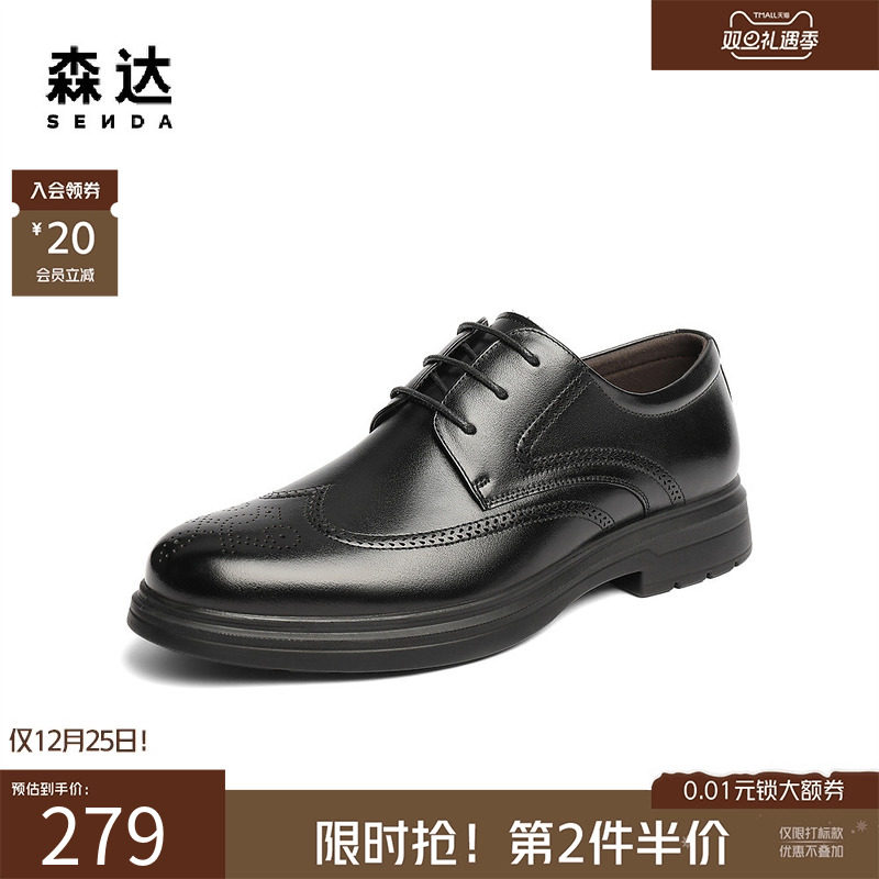 森达男鞋布洛克皮鞋2025秋季新款雕花牛皮革商务正装皮鞋JDZ36CM5