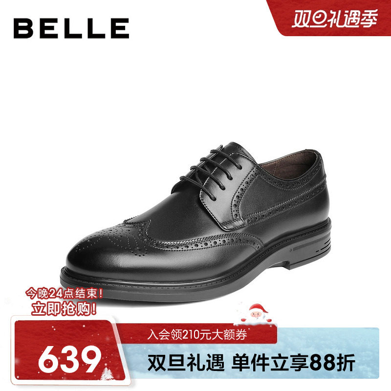 百丽男士布洛克雕花休闲商务正装皮鞋男25秋新款牛皮增高8TP01CM5