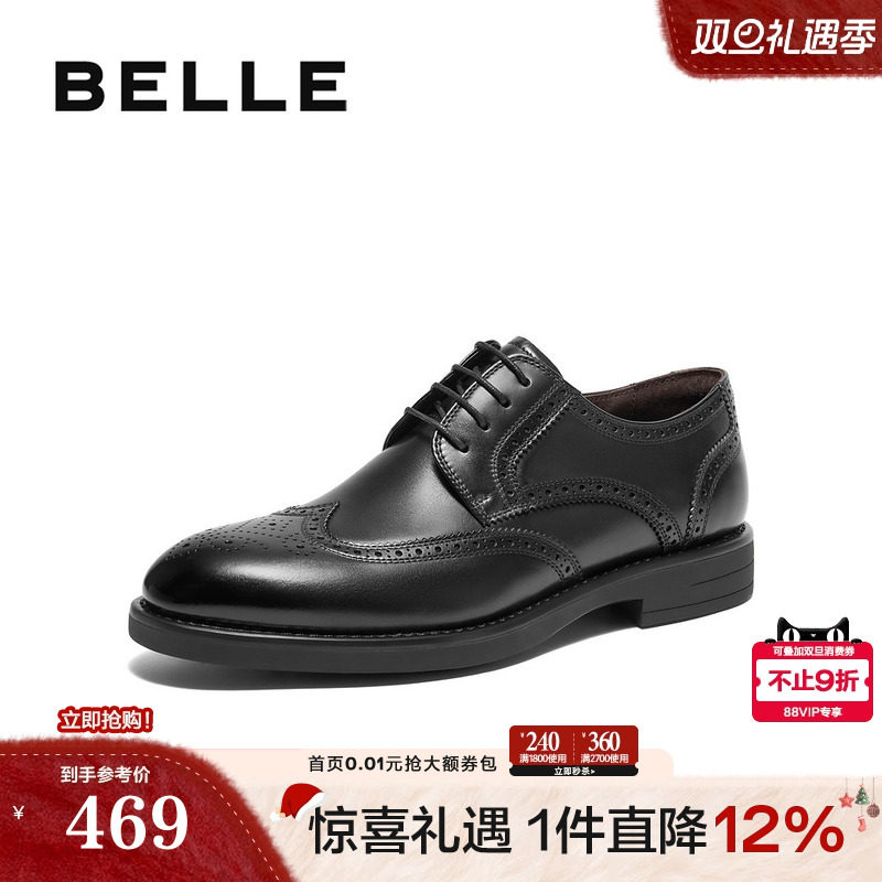 【清仓男鞋】百丽英伦风商务鞋男士牛皮革布洛克雕花通勤正装皮鞋