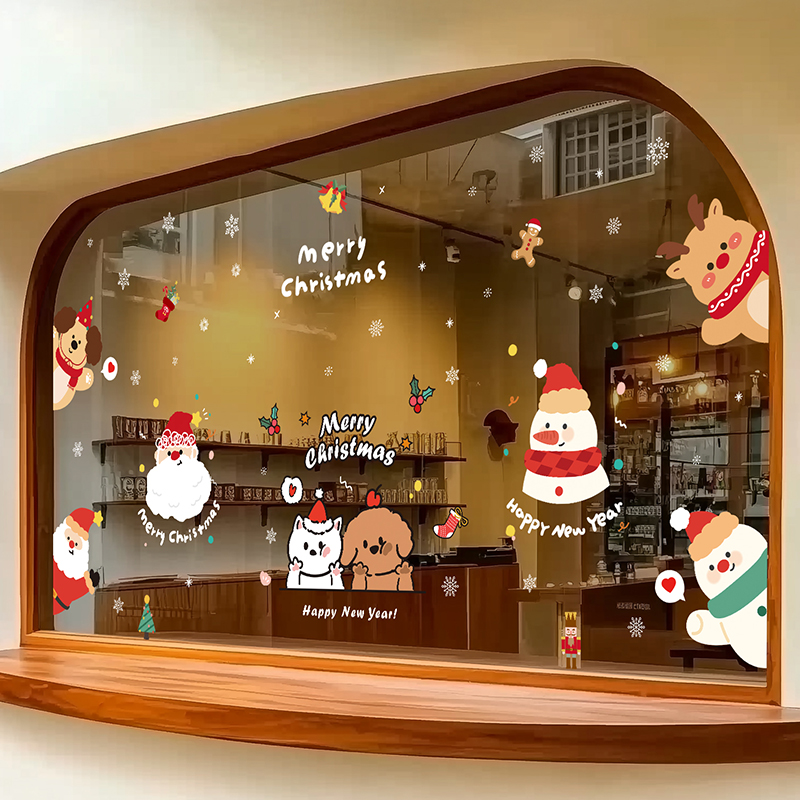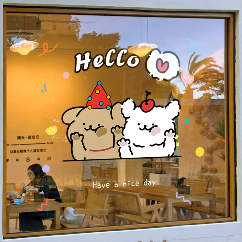 ins网红店铺布置窗花贴可爱狗狗窗贴2025新款橱窗静电玻璃门贴纸