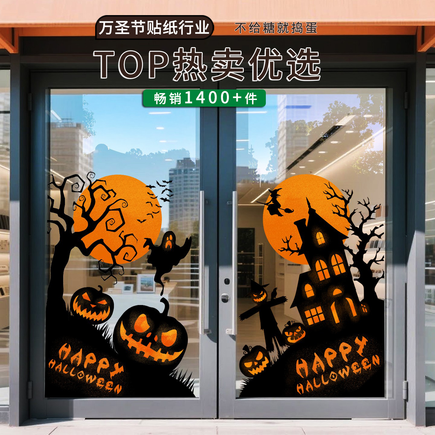万圣节玻璃门窗贴纸氛围装饰布置节日主题活动静电贴画饰品店窗花