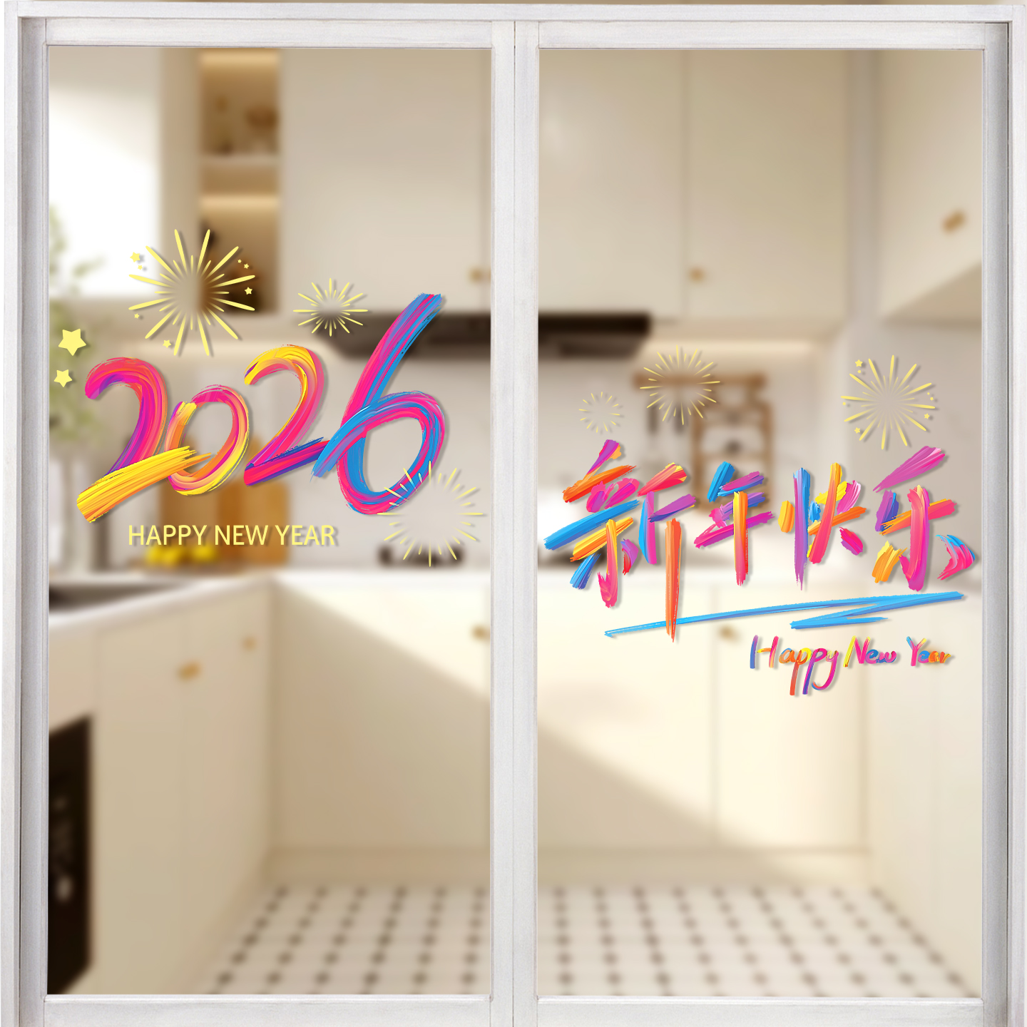 2026马年新年玻璃门贴纸静电贴元旦装饰春节窗花贴过年窗贴画布置