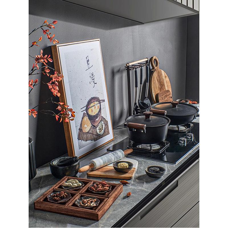 新中式厨房样板间装饰品摆件样板房橱柜展厅软装陈列厨具锅具套装