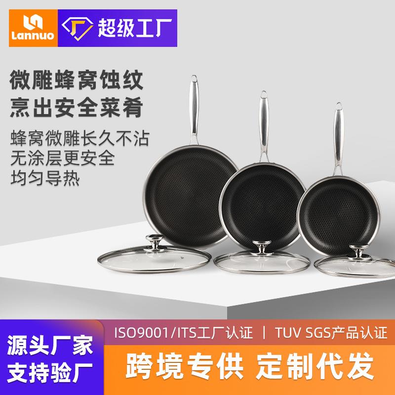 家用304不锈钢三件套炒锅平底锅汤锅煎锅炊具厨具锅具套装礼品