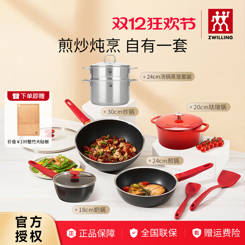双立人锅具套装锅汤锅套装煎锅家用不粘锅炒锅珐琅锅奶锅厨具刀具