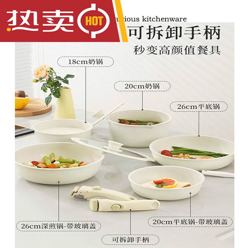 可拆卸手柄高颜值不粘锅厨具锅具套装全套L家用平底锅可拆卸锅具4