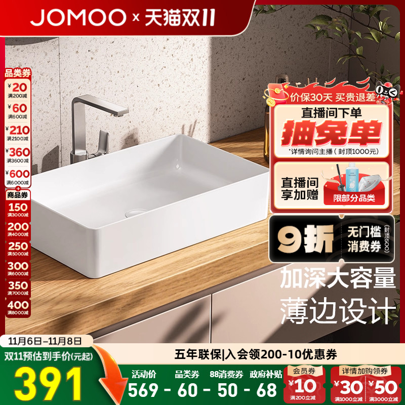 九牧台上盆洗脸洗手洗漱盆圆形陶瓷阳台方形卫生间防溅水面盆家用
