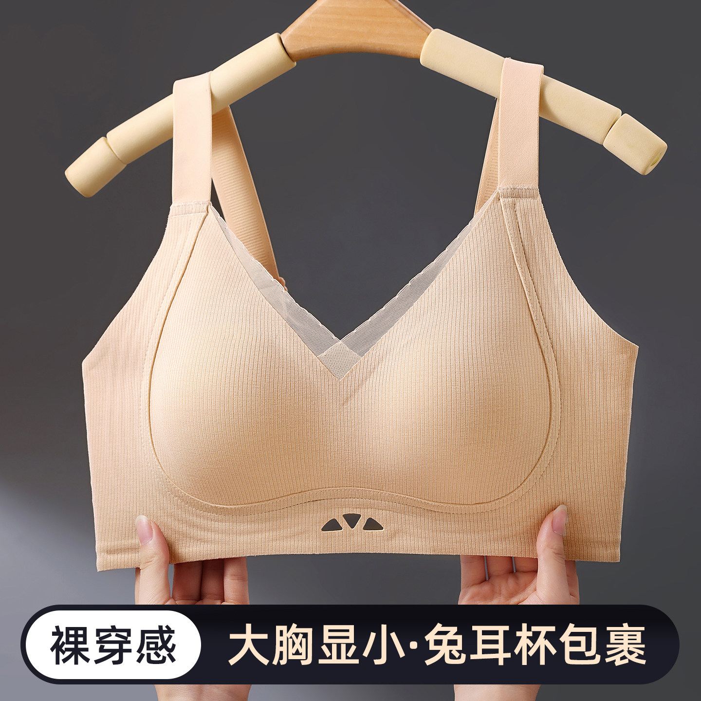 一片式内衣女无痕肤色大胸显小视觉显瘦上托防下垂兔耳杯大码文胸