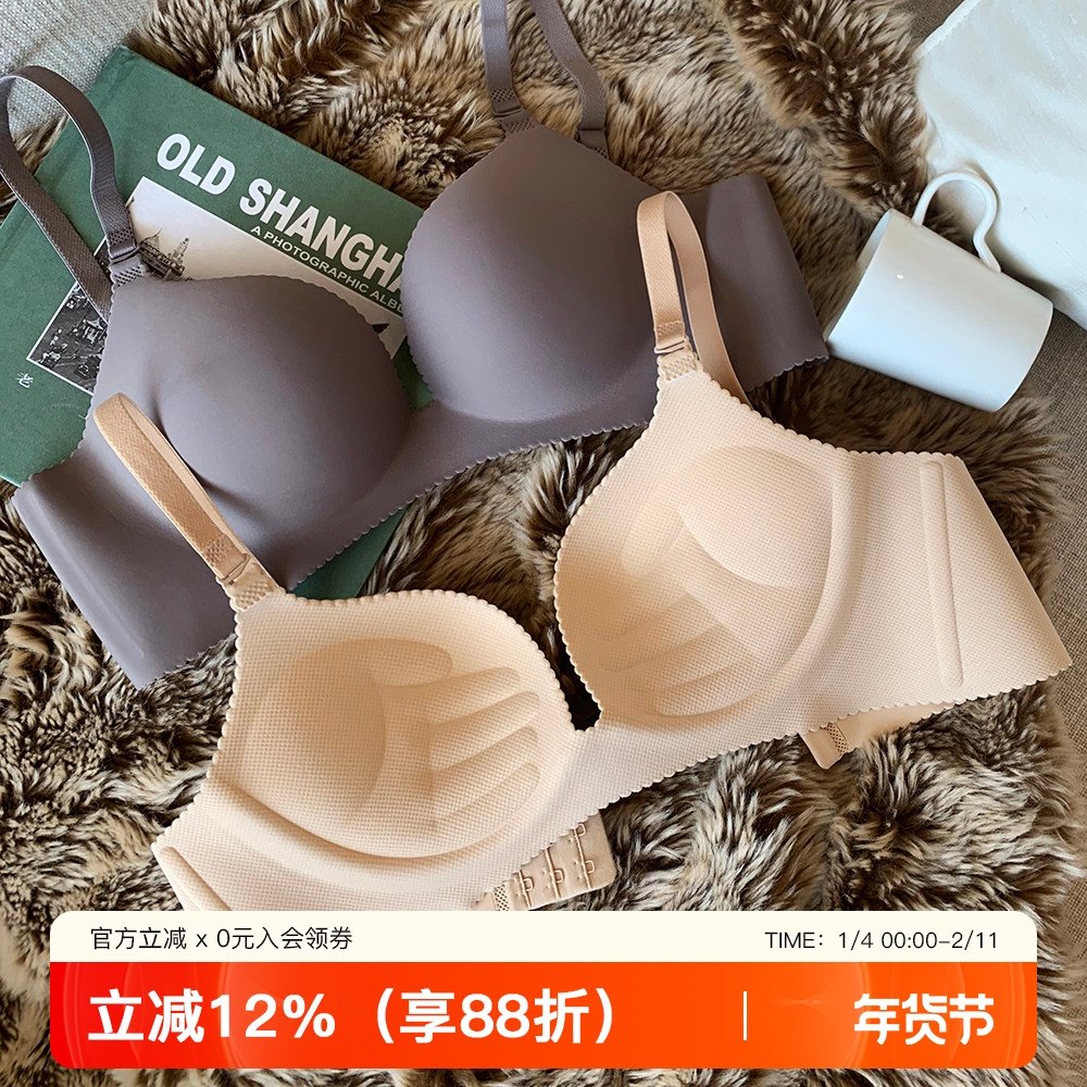 草本初色内衣女薄款无痕无钢圈莫代尔内里云感聚拢提拉一片式内衣