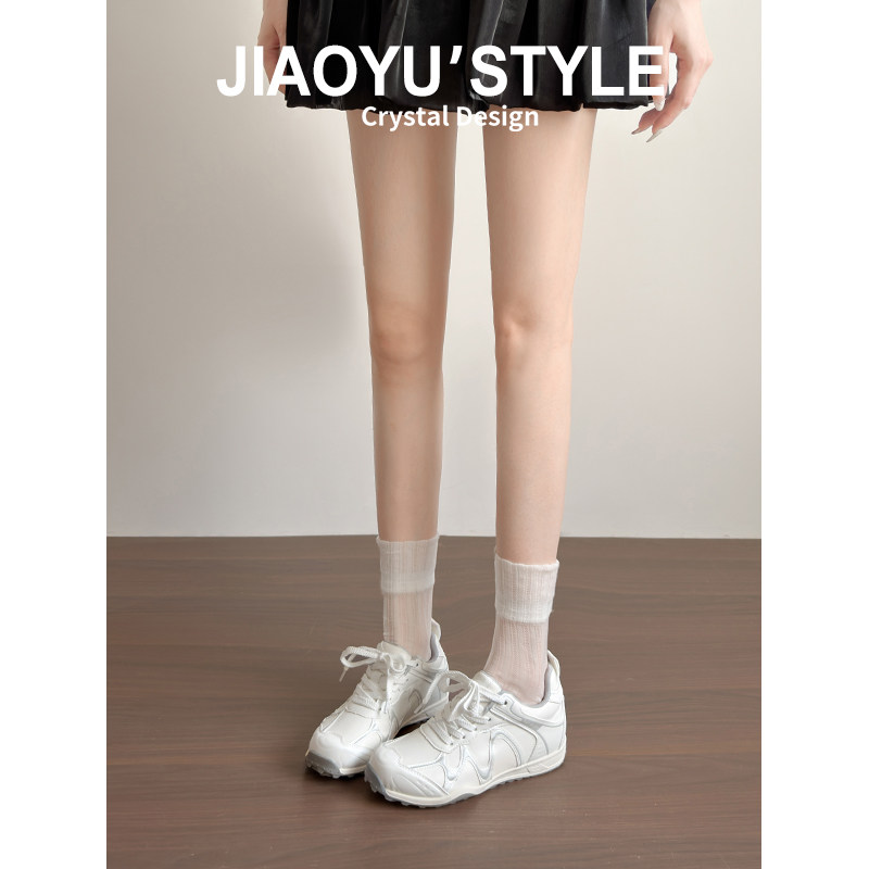 真皮~骄屿内增高芭蕾德训鞋女2026春新款厚底轻便休闲运动小白鞋