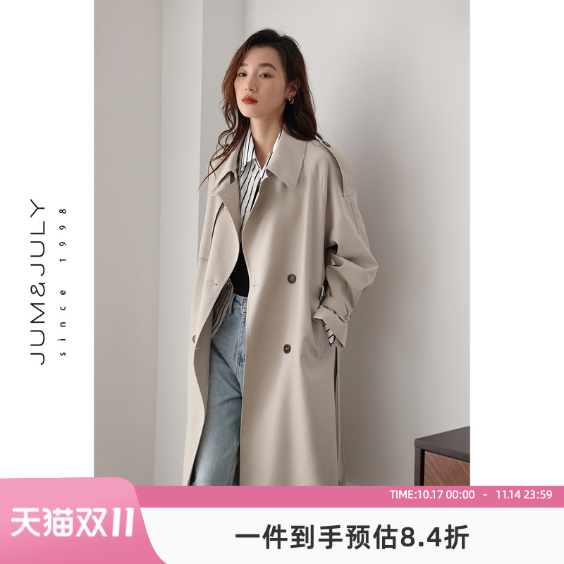 嘉茱莉新款春秋中长款风衣外套女英伦小个子上衣外套短款风衣休闲