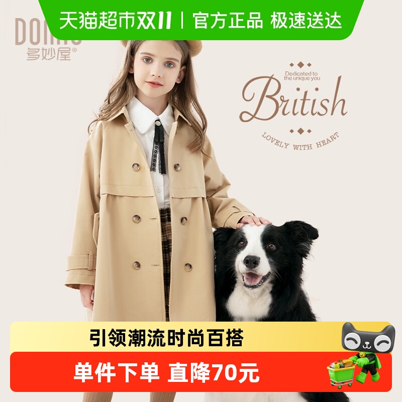 女童风衣儿童2023春秋装新款英伦风外套中大童洋气时髦中长款童装