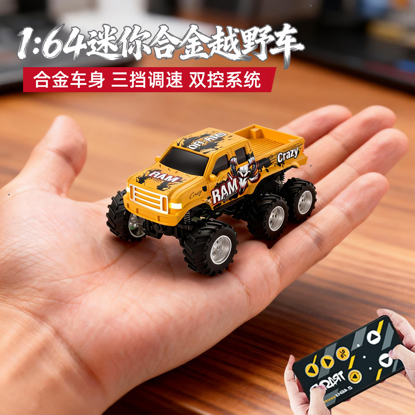 双控1:64迷你合金皮卡小汽车全比例遥控越野车遥控车儿童男孩玩具