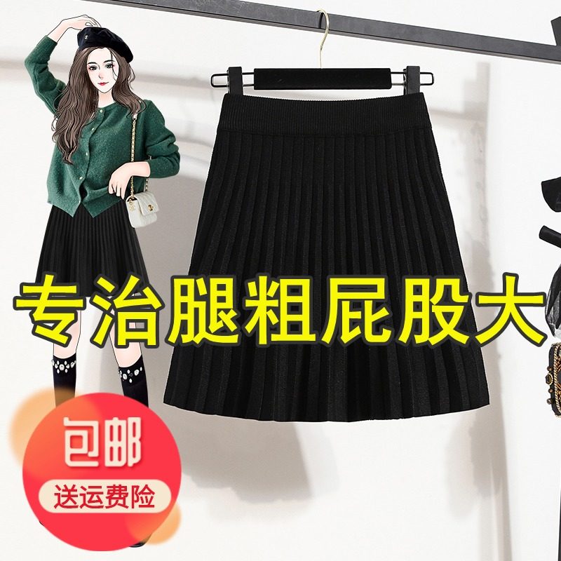 百褶裙短裙女2025秋冬新款大码胖mm针织半身裙a字裙半裙黑色裙子