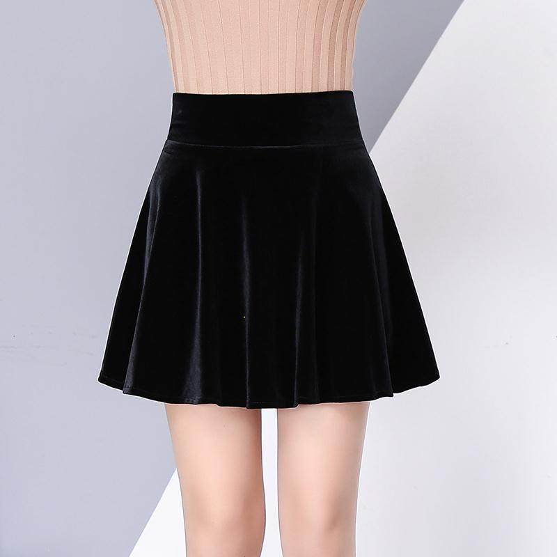 百搭显瘦伞裙松紧腰半身裙A字裙黑色大码气质不倒绒金丝绒半身裙