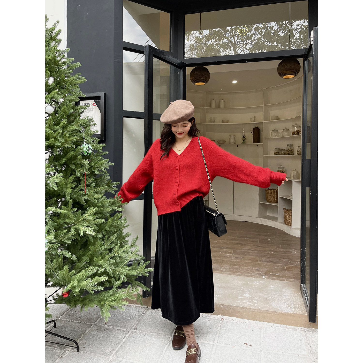 优雅万岁/Suri2024秋冬上新韩系超绒加密丝绒高腰显瘦半身裙A字裙