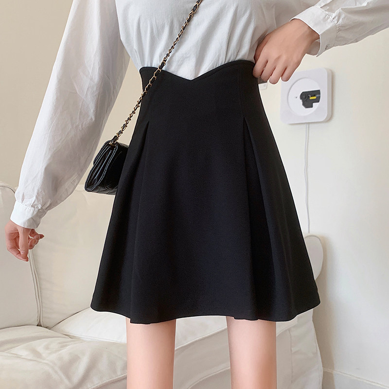 misslady韩国气质高腰复古设计侧开叉褶皱显瘦半身裙a字裙中长款