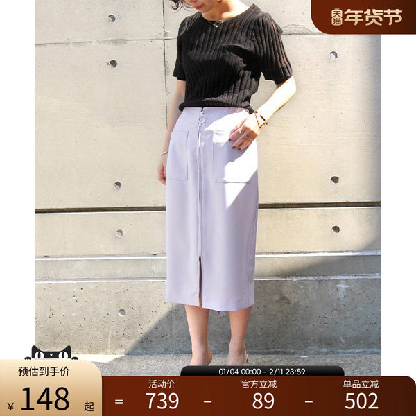 RANDA 春夏新款中线设计半身裙A字裙口袋分叉线 BB01146