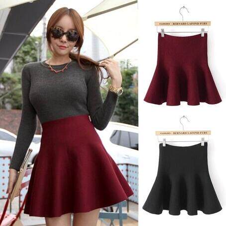 秋冬纯色针织短裙高腰百搭半身裙a字裙伞裙修身显瘦弹力裙蓬蓬裙