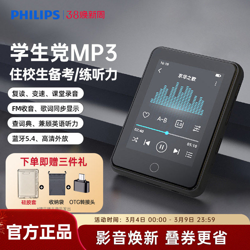 飞利浦SA3160随身听MP3播放器外放学生用英语听力MP4蓝牙触屏64GB