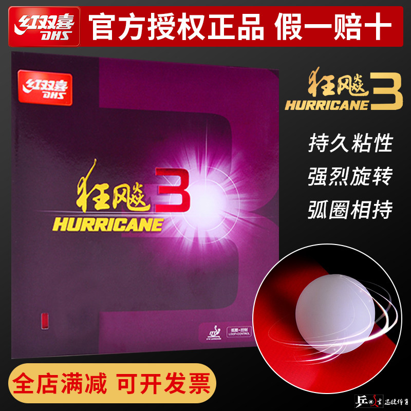 莹恋DHS红双喜狂飙3乒乓球胶皮球拍反胶套胶粘性普狂三狂飚3正品