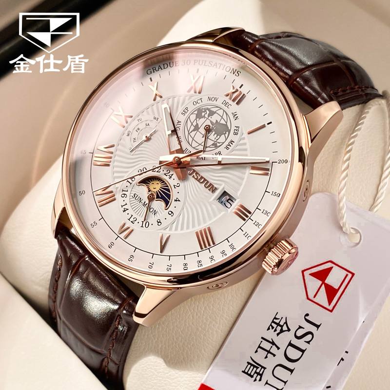 瑞士正品牌手表男士全自动机械表防水夜光真皮带商务时尚潮流男表