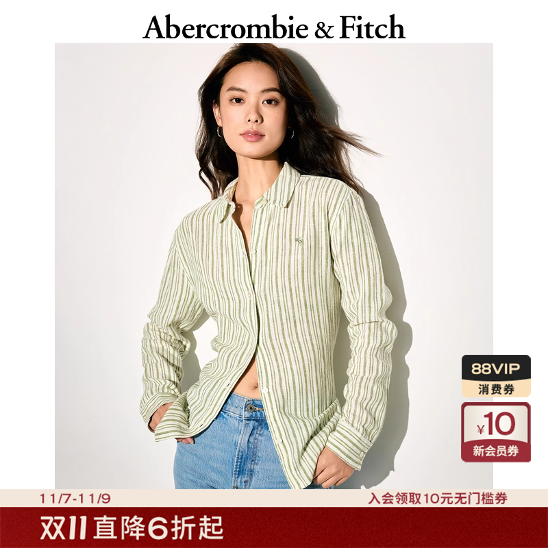AF经典小麋鹿图案女装25春夏亚麻混纺通勤长袖衬衫140-5081