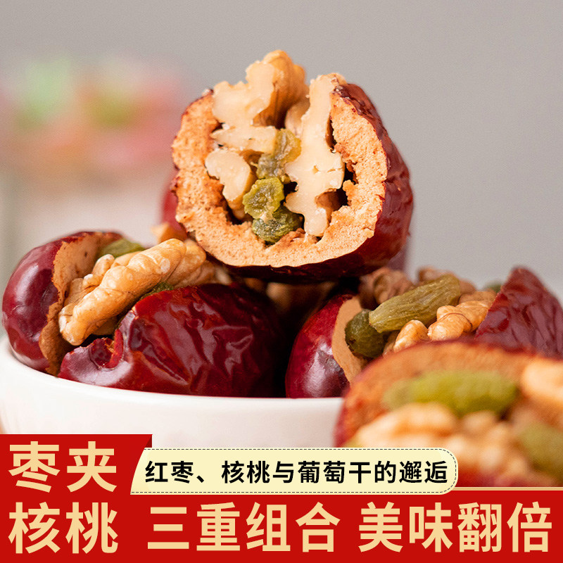 买1送1新疆和田红枣夹核桃仁葡萄干大枣子干果什锦夹心抱抱零食