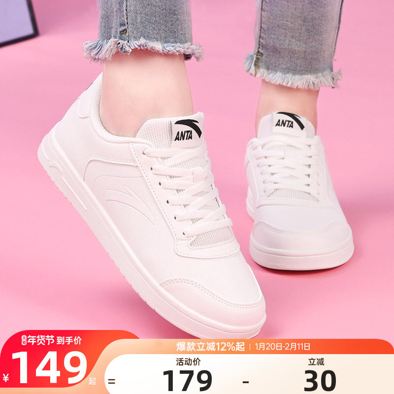 安踏小白鞋板鞋女款2026新款春季官方正品皮面纯白色休闲运动女鞋