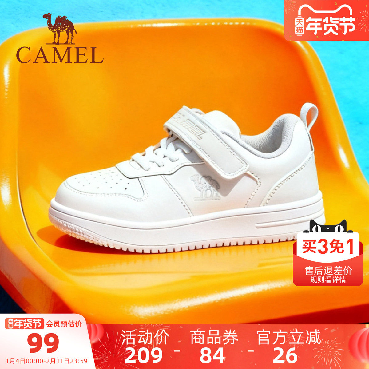 骆驼童鞋儿童小白鞋防滑耐磨魔术贴男女童白色运动鞋大童休闲板鞋