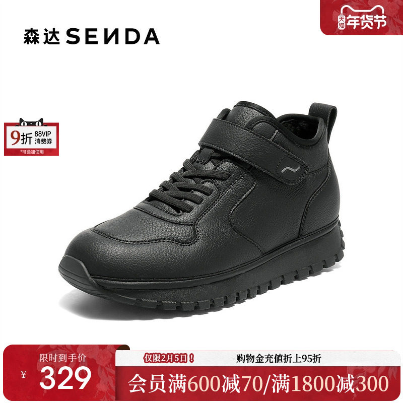 森达加绒高帮鞋女2025冬季新款女鞋厚底运动鞋白色休闲板鞋XUA01