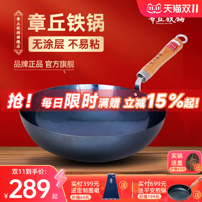 章丘炒菜锅传统铁锅官方旗舰老式炒锅家用不粘锅无涂层燃气灶适用