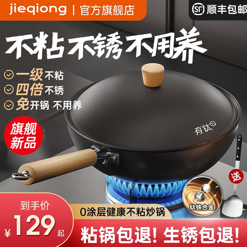 九阳铁锅无涂层炒锅家用炒菜锅电磁炉专用燃气灶煤气灶不粘锅锅具