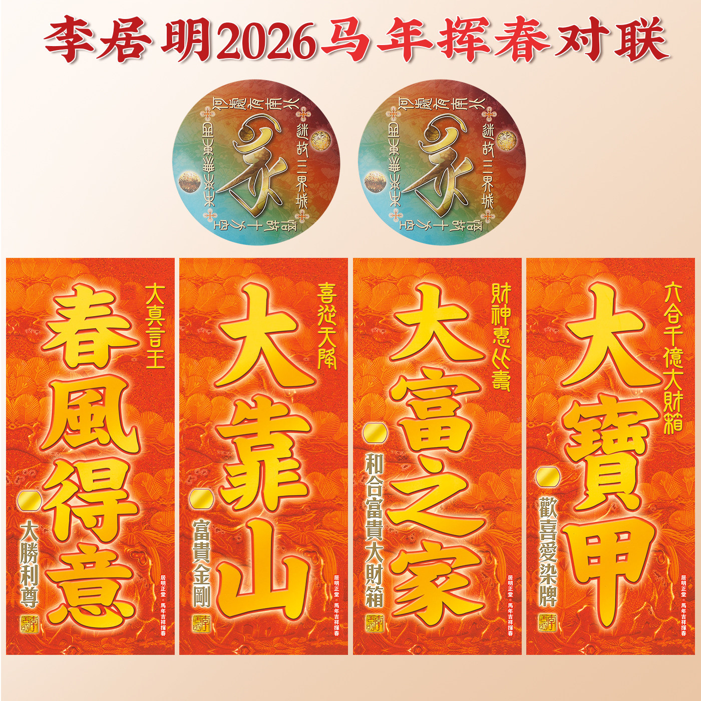 李居明2026年吉祥物马年贺年挥春春联对联门贴窗贴三面财神门神贴